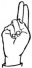 На ћирилици написано ПУРЕШ ЋОКИЋ састоји се из 10 слова [?]. Исписано ћириличном једноручном азбуком за глувонеме: